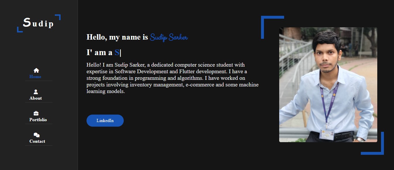 Hello! I am Sudip Sarker, a dedicated computer science student with expertise in Web Application Development and have a strong foundation in programming and algorithms. I have worked on projects involving inventory management, e-commerce and some machine learning models.